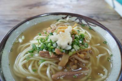 褐色のスープはとても濃厚でいて甘め。本島北部のそば屋さんを思い出します。