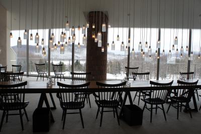 富良野産の牛乳瓶のシャンデリアが印象的なロビーで