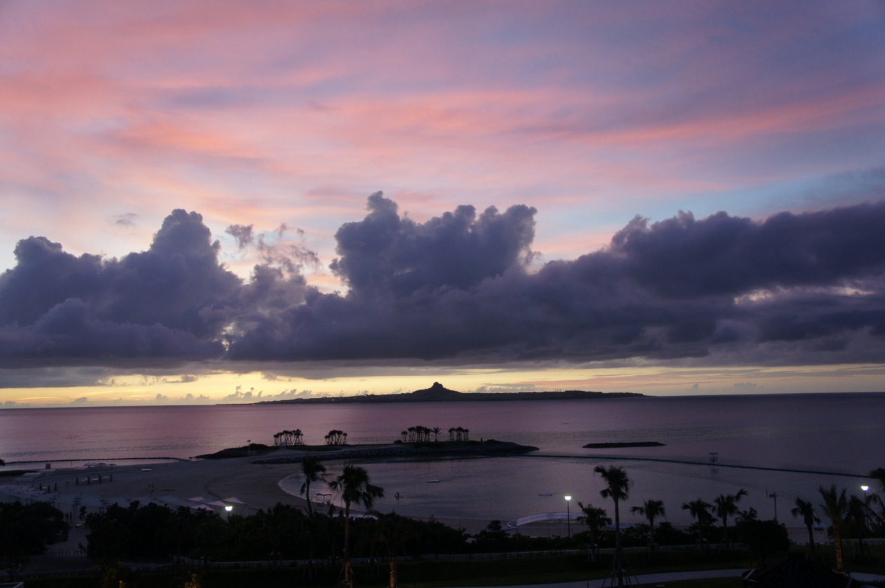 到着時、夕暮れ時の伊江タッチューを