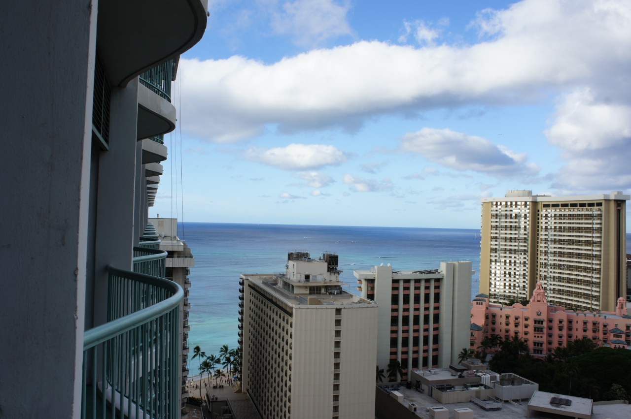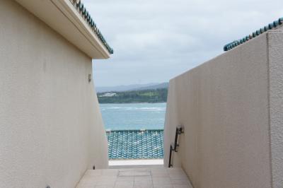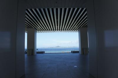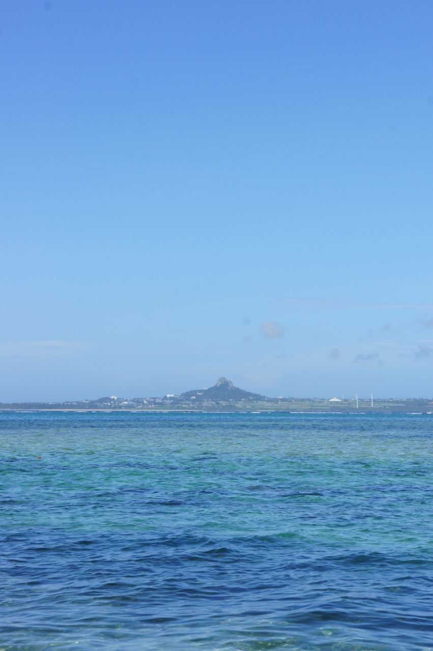 エントランス正面から見える伊江島に感激。