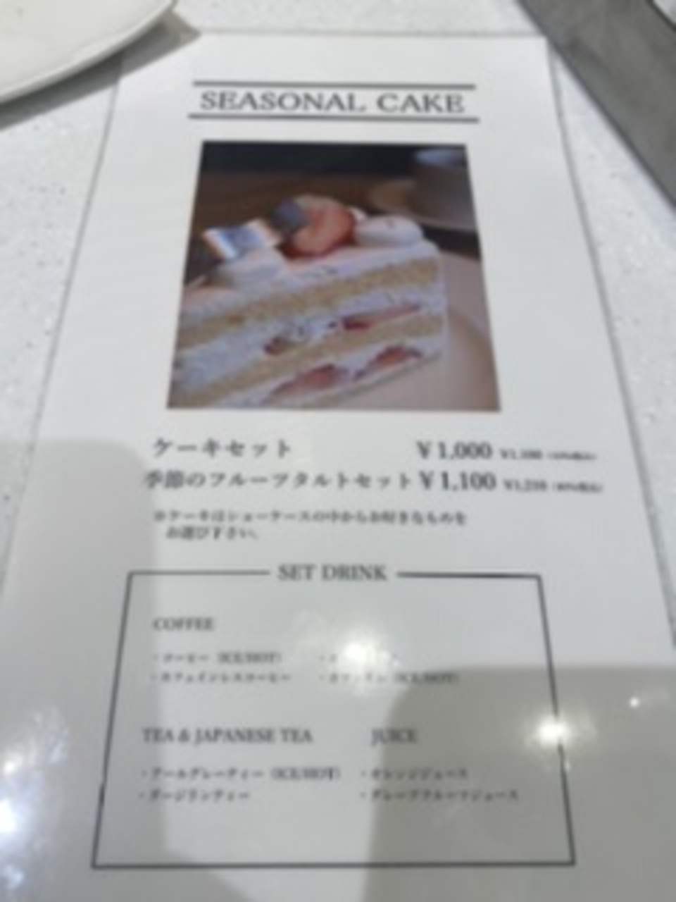職安通りのドン・キホーテ近くにあります。店内で頂く時は先に席を確保してくださいとのこと。今回は店内で抹茶クリームフラペチーノ620円とブルーベリーヨーグルト720円を注文。呼出ベルを渡されます。どちらも美味しい!ケーキセット900円も気になったなぁ。