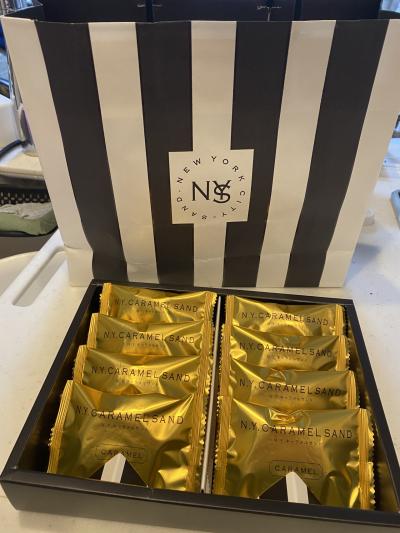 いつもは羽田空港で調達しているキャラメルサンド。手土産に購入したくて平日の昼下がりに大丸東京を訪れたら混んでますねぇ。コロナ対策なのか、外に並んでくださいと言われ店外で並びました。10個入りを購入しましたが、包装をお願いしたら、ストライプのおしゃれな紙袋で用意して頂けました。すこし並びましたが、結果満足です。
