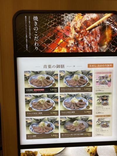 アトレで買物した後、レストランフロアへ。店内広くはないですが、他のお客さんとは距離が保たれています。お勧めの青葉御膳を注文。牛タン&牛カルビ、むぎ飯、とろろ。むぎ飯はおかわり出来ます。私は2杯目をとろろで頂きました。大体2,000円前後の定食です。