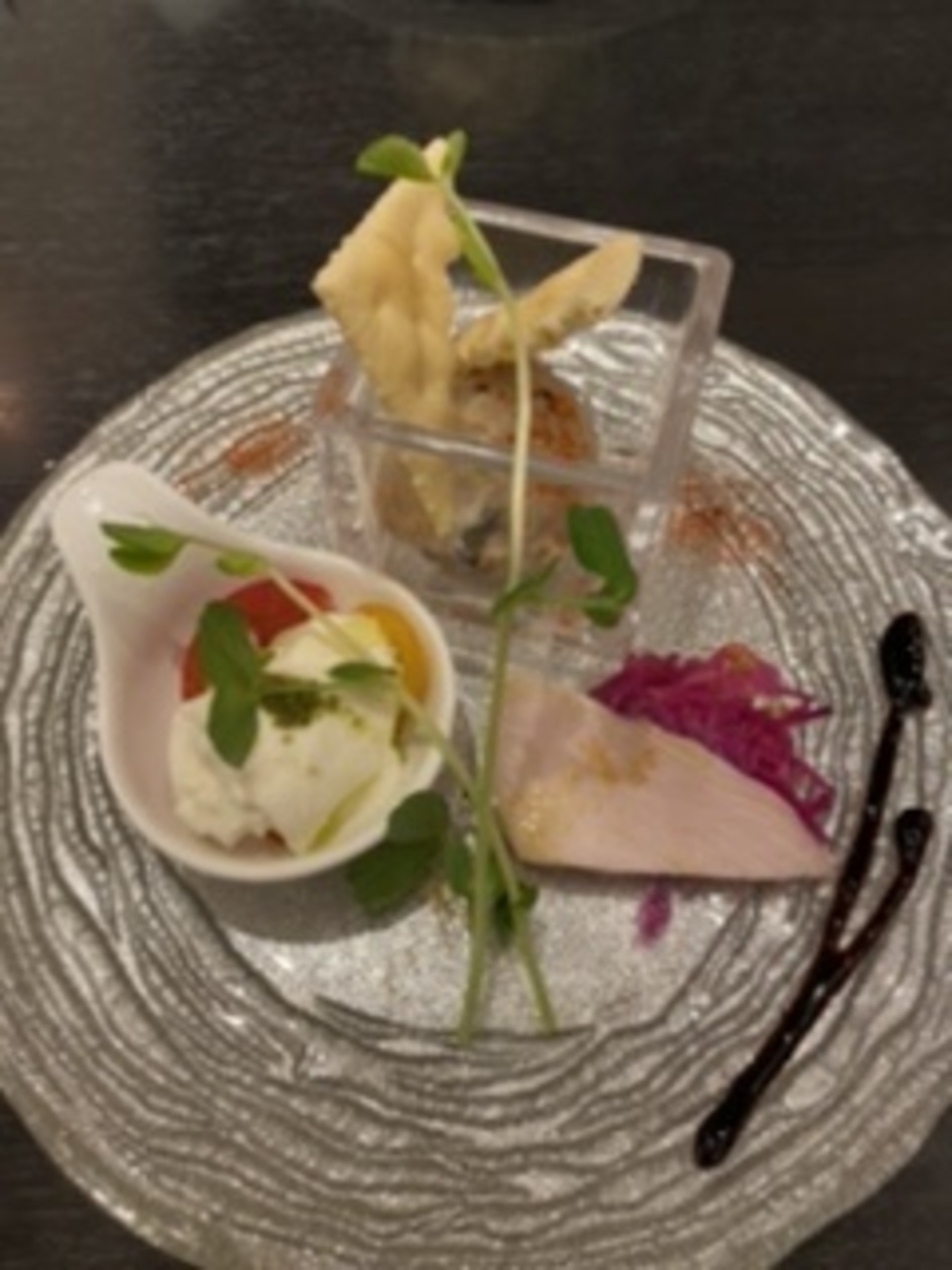 去年はコロナ禍でできなかった友人のBDランチで訪問。一休から予約して、ドリンク2杯付の贅沢7品ランチが6336円→4000円で頂けました。土曜日の13時でしたが、予約で満員。彩り豊かなオーガニックサラダから始まり、オマール海老のトマトクリームパスタとお肉。デザートプレートまで丁寧にサーブしていただきました。銀座シックスの近くで場所もわかりやすいです。