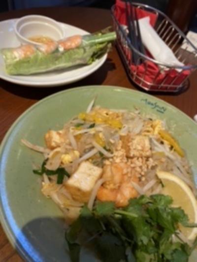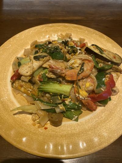 自由が丘駅からのすぐの地下にあります。雰囲気良いですね~。自由が丘店は初めての訪問です。休日の16時頃に軽めの食事で伺いました。海鮮のパッタイに生春巻きを追加。パッタイは少し油っぽいけど、エビとイカが入って1200円。生春巻きは一本から注文できるのが嬉しい380円。パクチー入りでお願いしました。変わらない美味しさとほっとできる空間に満足です。