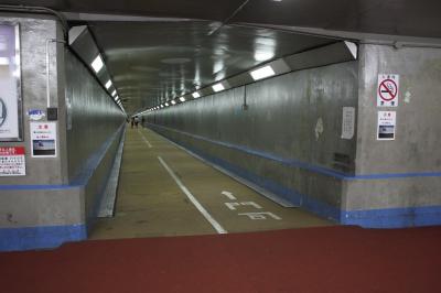 自転車も乗れるエレベーターで降りていくと、トンネルの入口がありました。