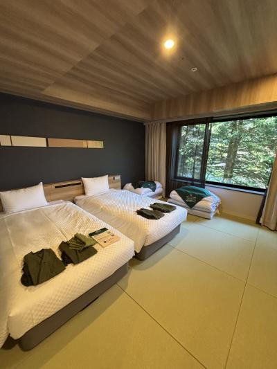 和室にはベッドのほかに 布団が2組付きますが、部屋が狭くてL字型にしか敷けません。それが唯一の不満点です。スタッフは 皆親切で、気持ちよく滞在できました。また利用したいと思いました。- 旅行時期