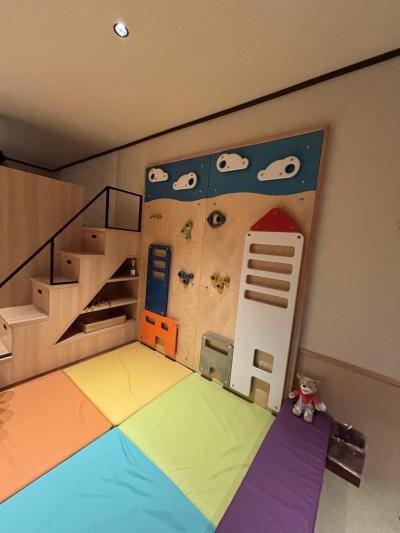 こども用ボルダリングボードがあるお部屋があります。露天風呂付きなので、おチビちゃんの大浴場デビューが心配なパパママも安心です。他にも ロフト付や女子旅用?のピンクのお部屋など 様々なコンセプトのお部屋があって 選ぶのも楽しいです。