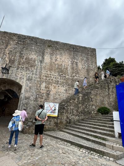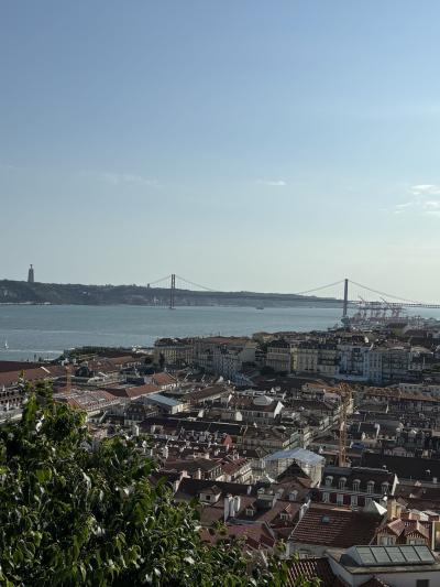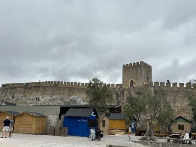 お城かな?と思ったら、メインは庭の展望台だった!ここはリスボンカード専用の入口がありましたが、どちらも並んでいませんでした。カードを見せてチケットをもらいます(リスボンカードで無料)。中に入ると、街が見渡せる展望台になっていました。ここからの景色は美しかったです。さてお城は、というと ほんの一部のみが残された状態でした。お城の上に上ったり、城壁巡りが楽しめます。孔雀がたくさんいて、皆喜んで写真を撮っていました。城跡の展望台公園という感じ。お庭からの眺めがとてもステキでした。ものすごい坂を上りますが、リスボンカードならバスにも乗れるのでいいかと思います。