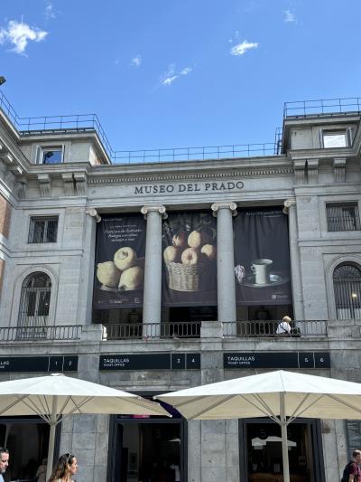 18時からは入場無料ですが、とても2時間では回りきれません。無料入場にもチケットが必要なので、皆さん早くから並んでいます。チケット購入希望者の列は、日によって待ち時間が違いますが、前日までにネットで購入しておけば 時間を有効に使えます。荷物のX線とボディチェックがあります。リュック等は預けますが かえって身軽に見学できて嬉しいです。スーツケースを預ける人もいました。入るとすぐインフォメーションがあり、日本語パンフレットもありました。見どころと地図が大変便利です。美術館正面にゴヤの像があります。ゴヤの作品がたくさんあり、それらを見るだけでも楽しいです。館内写真撮影禁止です。