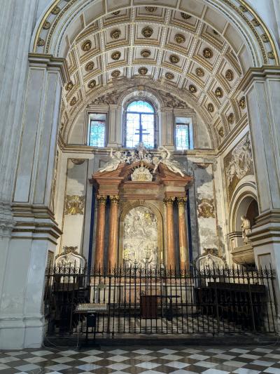 メインの通りに出口があります。王室礼拝堂とくっついているため、入口がちょっとわかりにくかったです。(前日、間違えて王室礼拝堂に入ってしまいました。)バロック様式のファザードからは狭い印象を受けましたが、中はとても広くて明るかったです。特にステンドグラスは、色使いが明るくてとても美しかったです。