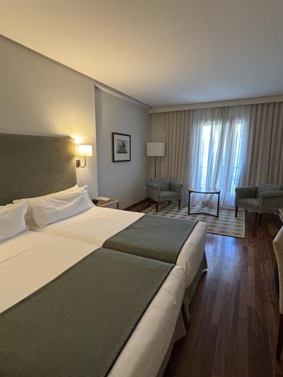 ヌエボ橋の新市街側にある、旧市庁舎のパラドールです。建物自体は、お城のパラドールのような面白味はありませんが、あの、ヌエボ橋のたもとにあるというだけで 滞在する価値があります。公園の展望台から見る景色を、お部屋のバルコニーから見られるなんて、なんと贅沢なことでしょう。エアコン、冷蔵庫、広いバスタブもあります。朝食はビュッフェ、卵料理やベーコンなどは個別に注文します。デザートも充実しています。渓谷の景色に圧倒されるホテルです。