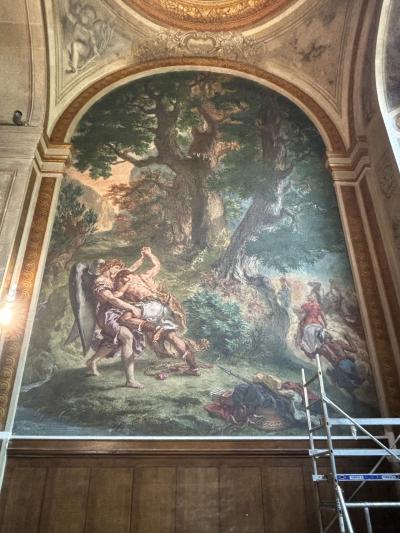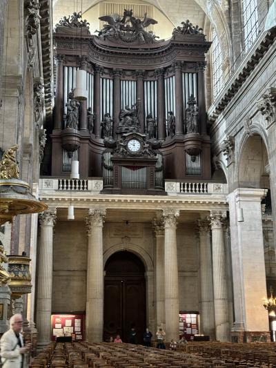 ボンマルシェに行く時必ず寄るのが サンシュルピス教会です。映画「ダヴィンチコード」で有名になり、一時は、「これが映画ダヴィンチコードの〇〇です。」みたいなプレートもありましたが、ずいぶん前に取り外されました。もう映画を知ってる人も少ないのかしら。ドラクロワのフレスコ画など、芸術作品もあります。