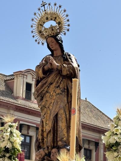 聖なる木曜日です。朝から教会の鐘がジャランジヤランとけたたましく鳴っています。カテドラルには1.5mはある太いろうそくを持った人達(信者さん?)や神父様たちと共にマリア像やキリスト像などの山車の行進があります。さて、カテドラルですが、世界最大のゴシック建築の大聖堂です。内部にはコロンブスのお墓や王室礼拝堂、様々な作品の展示があります。ヒラルダの塔は、モスクの尖塔を鐘楼として転用したものだそうです。