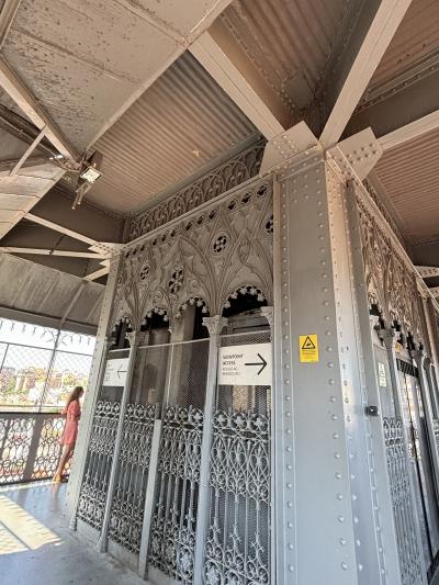 エッフェルの弟子による、約100年前のエレベーターです。椅子に座って上がります。45メートルの頂上は展望台になっていて、サンジョルジュ城の城壁や街を見渡すことができます。たくさんの人が並んでいますが、視点を変えて、頂上側から下りに乗れば ほとんど並ばずに乗れます。下から上がって展望台!の感動はありませんが、時間を節約したいなら カルモ教会の裏側から展望台へ行き、下りのエレベーターに乗ればいいかなと思います。