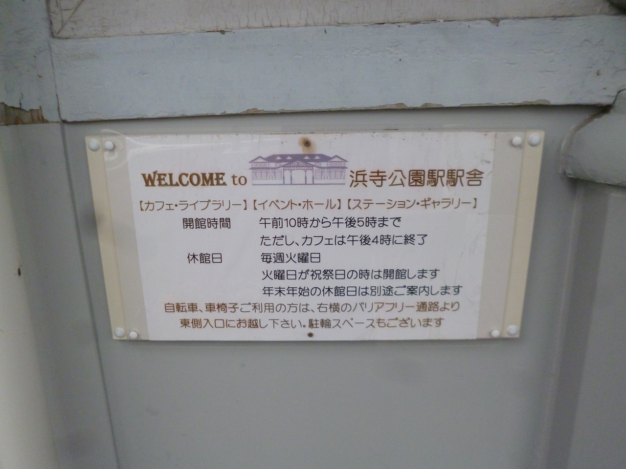 南海電鉄の浜寺公園駅。東京駅などを設計した辰野金吾が手掛けた駅舎。南海電鉄の立体交差事業のため、仮設場所に移動され、カフェ・ギャラリーとして使用されています。歴史を感じる建物でゆったり過ごせるとは優雅なものです。
