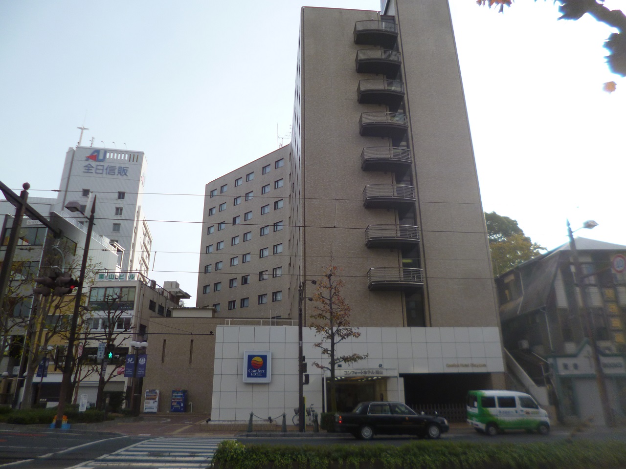 初めて利用させて頂きました。岡山駅から路面電車に乗り城下駅のすぐ近くにあります。室内は多少古さを感じますが掃除も行き届いていて問題は感じませんでした。このホテルはなんと言っても朝食が付いていて品数もあり価格的には満足でした