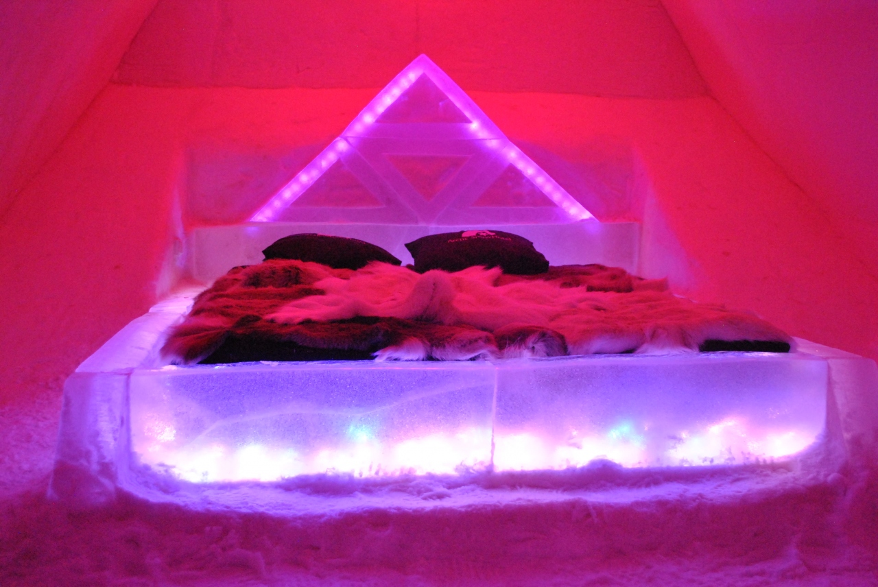 宿泊施設は全面氷でできているので、室温はマイナス1~3度とのことですが、通常、外はもっと寒いので、相対的に暖かいです。