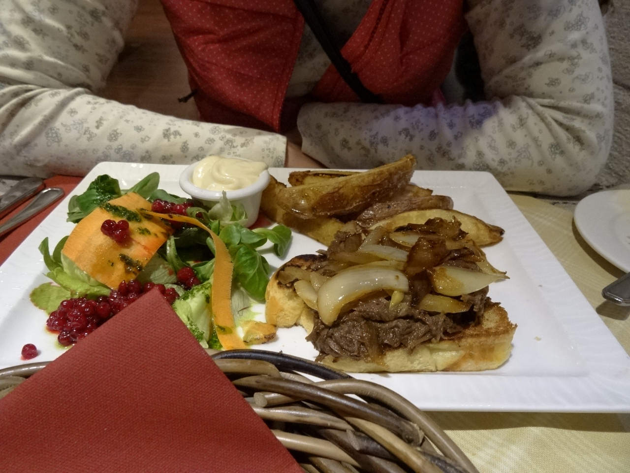 はじめてきたところなのでどこで何を食べていい中、ホテルのレストランは役に立つ。