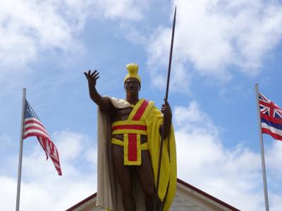 ハワイにはカメハメハ大王像が実は3体あるそうで、オリジナルがこのカパアウの大王像、2体目が超有名なホノルルのイオラニ宮殿にある像、そしてヒロの街中にもあるそうです。