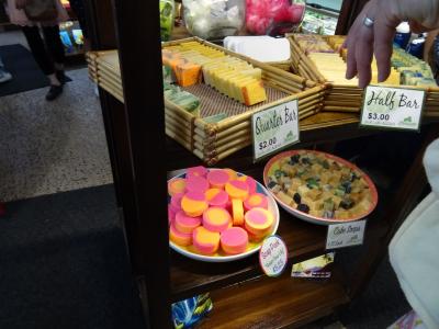 手前の石鹸工場跡と奥のお土産センターに分かれているが、石鹸工場跡は石鹸の販売がされていて、いろいろな種類の石鹸が置いてあり、女性には楽しいところかも。