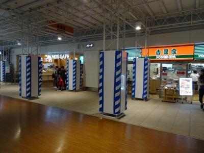 出発ロビーのアッパーフロアの奥、モスカフェや吉野家のあるところは只今工事中です。
