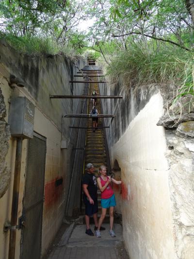 1つは踊り場なしの急峻な200段近い階段のコースと引き続きなだらかなコースがある。体力に自信がある方はせっかくなので前者を選ぶことを勧めます。