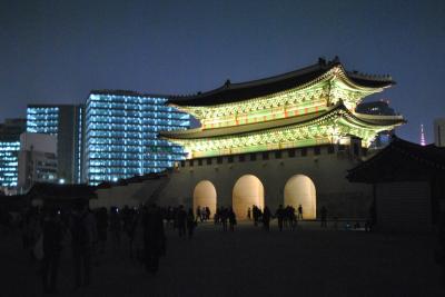 勤政殿、慶会楼のライトアップは昼とは異なりキレイだが、ライトアップはこれだけ。