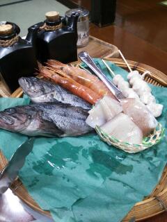 夕食は、別館に移動して炉端焼きなど。他にもお刺身などもあり食べきれないくらい十分な量でした。