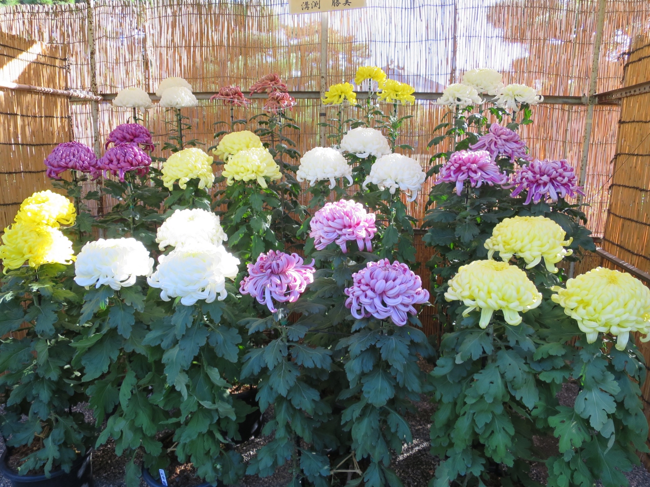 大きな菊から小さな菊まであり、色も白・黄色・紫・赤とあり