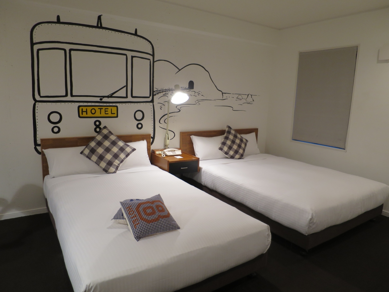 部屋の壁には江ノ電の可愛い絵が描いてあり、
