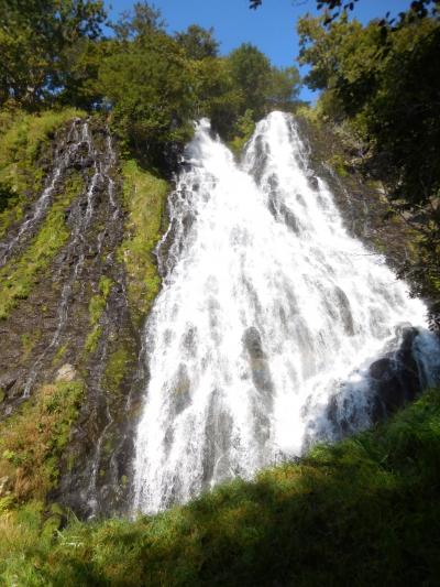 知床五湖の近くにある、世界遺産知床半島の海岸の断崖絶壁から流れ落ちる滝を陸側から間近に観察できる景勝地です。