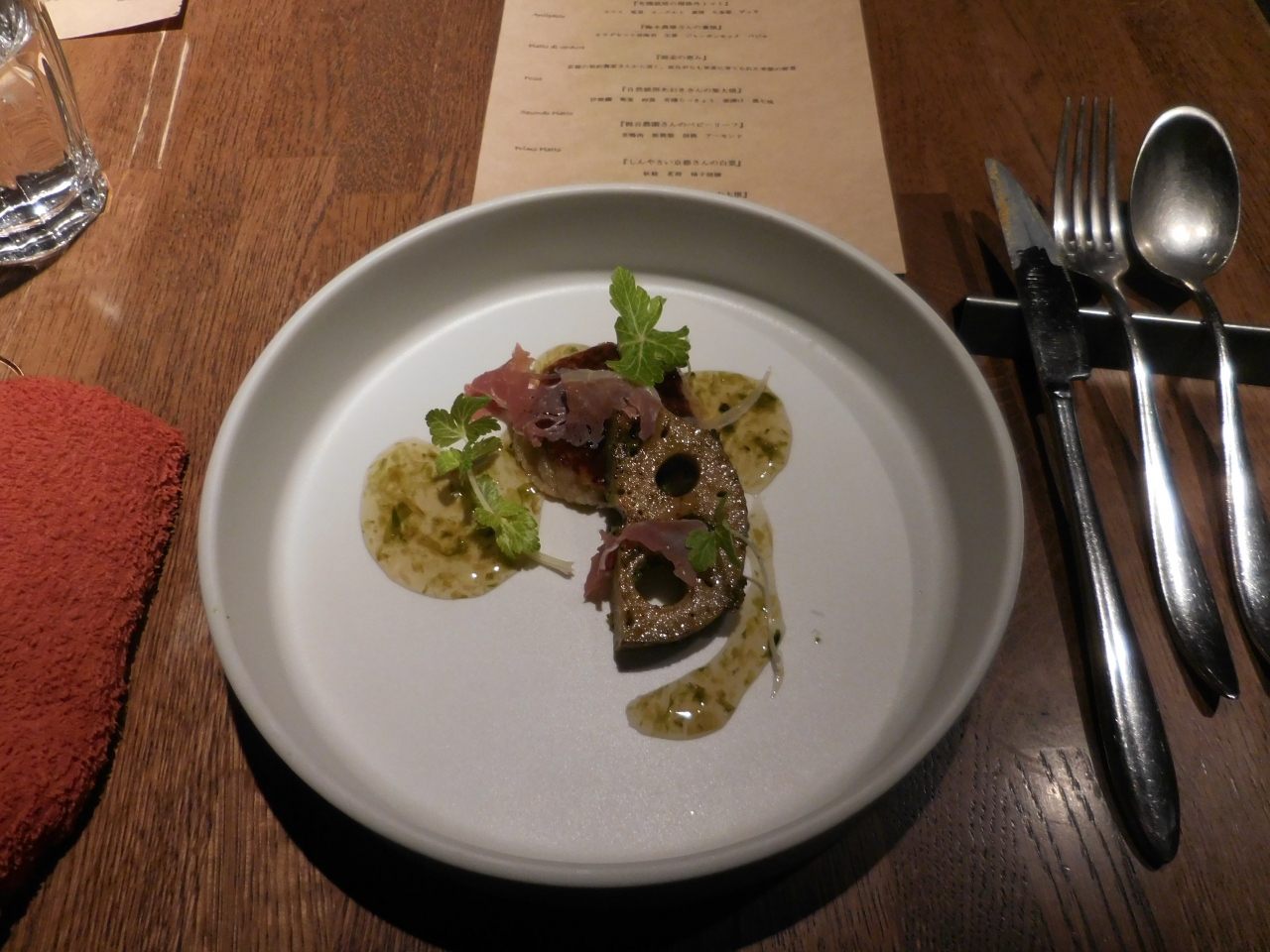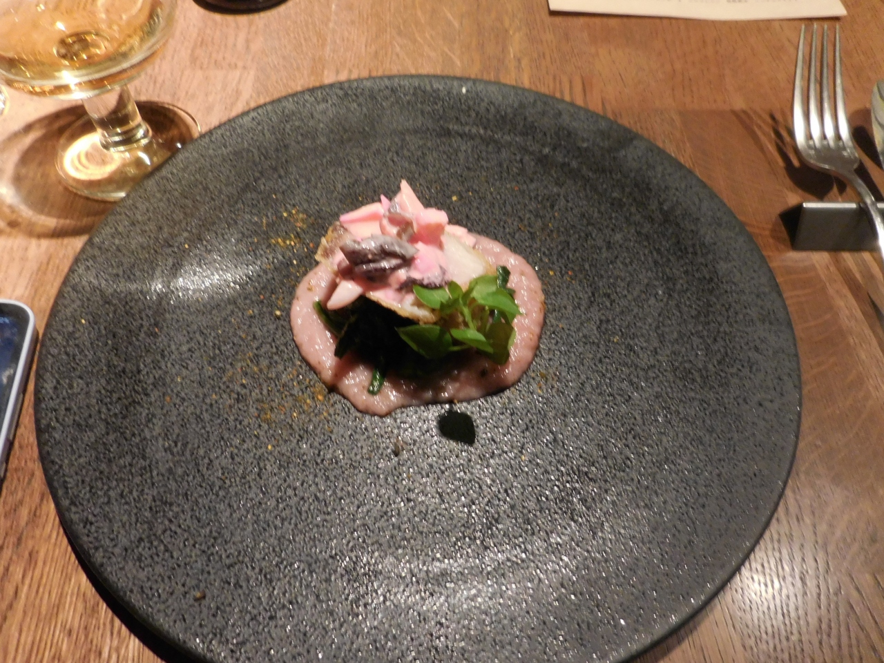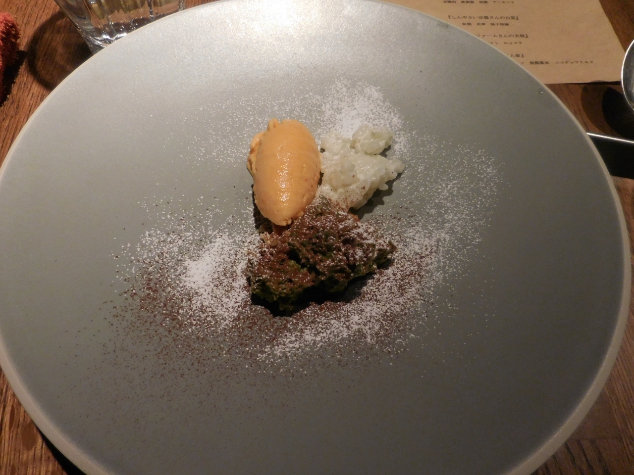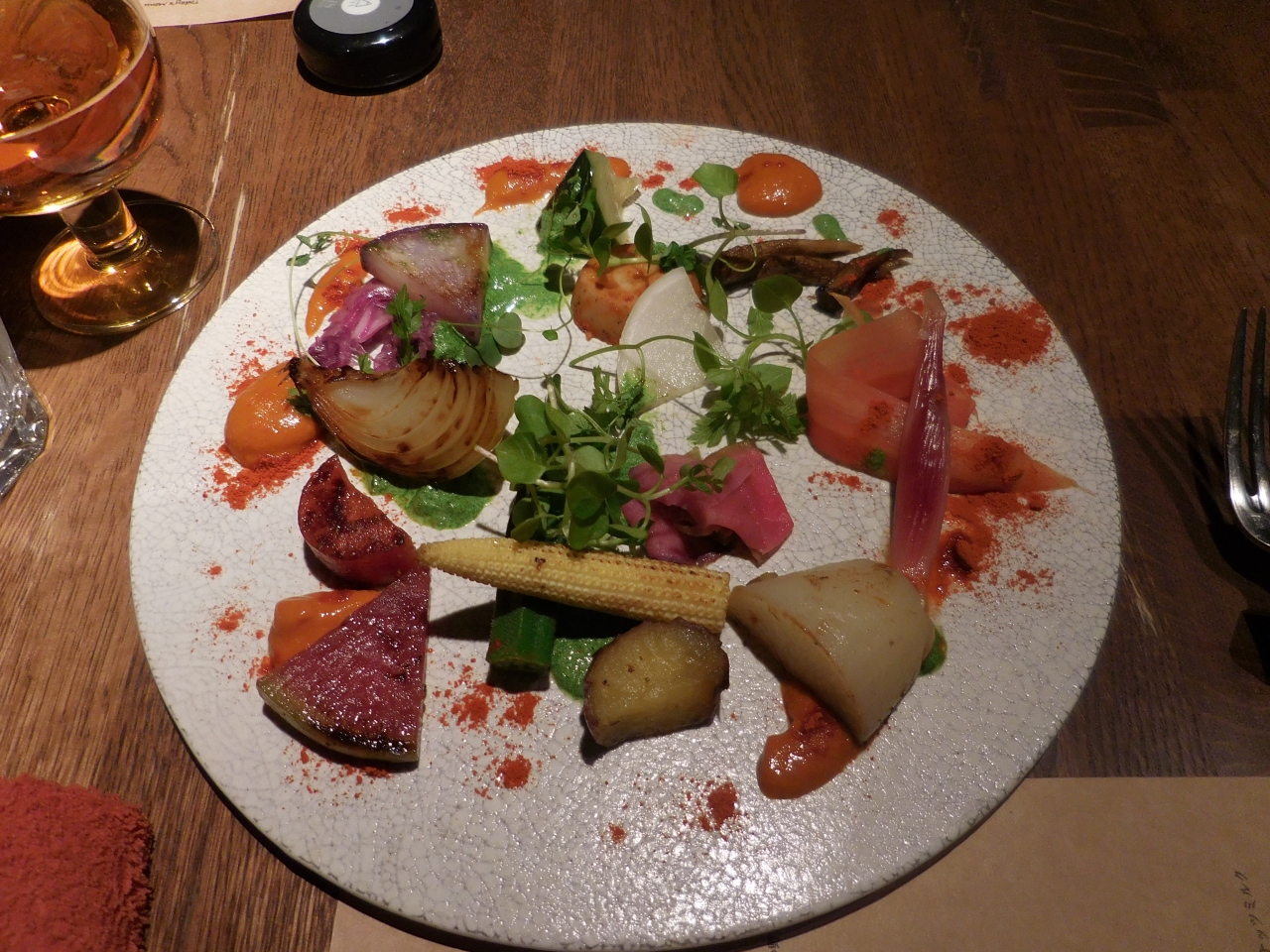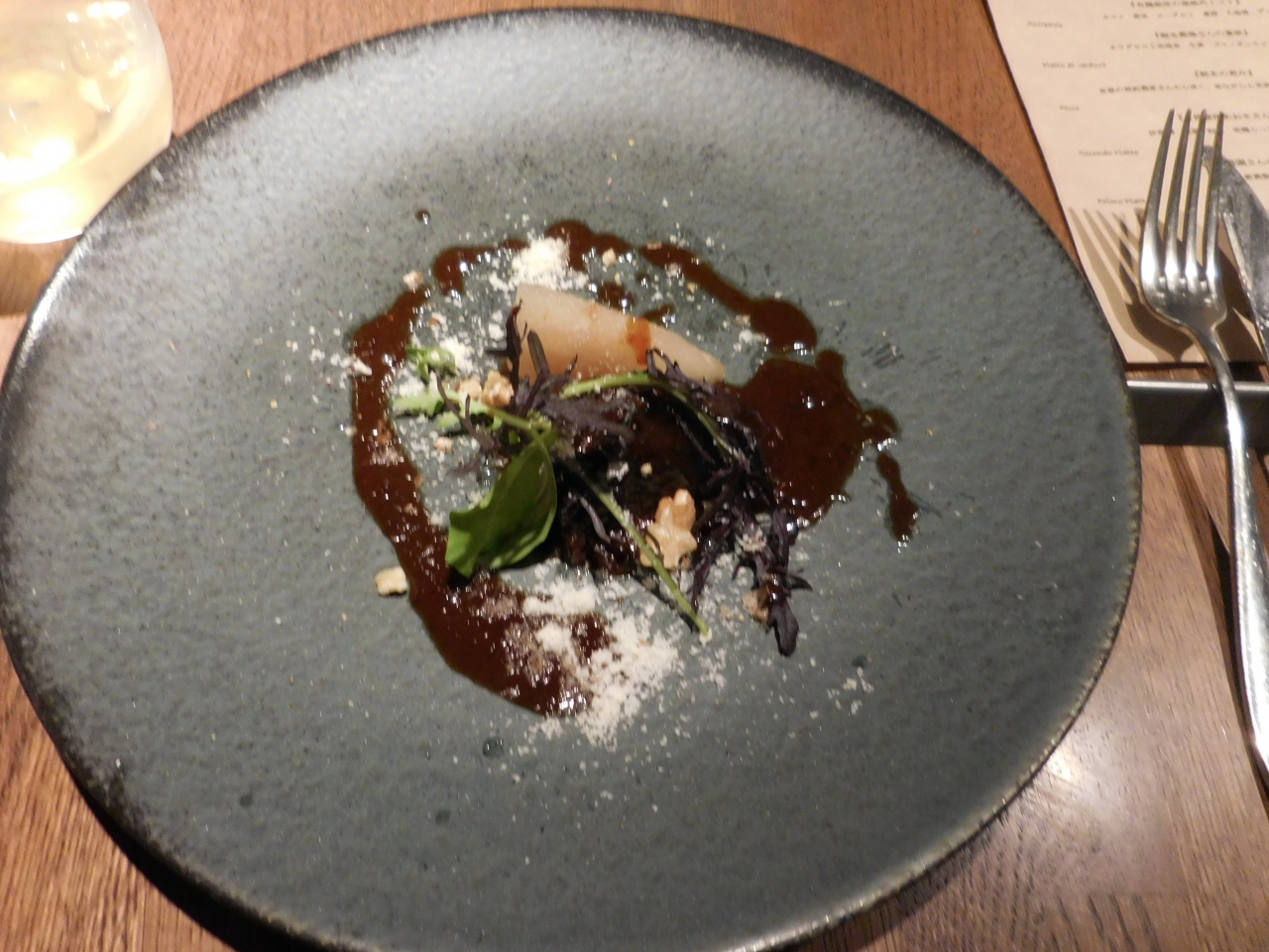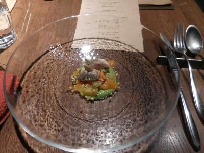 料理は素材にこだわったメニューだそうです。盛り付けが奇抜で美しい。デザートまで全8皿のコースでした。