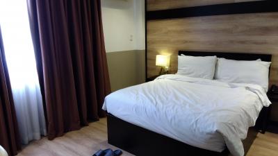 2泊 朝食つきで7800円くらいで予約しました。カード・キータイプでシャワー・トイレでバスタブはなく、ベッドはシングルとダブルベッドがあるタイプの部屋でした。私は利用しませんでしたがプールもあるようです。
