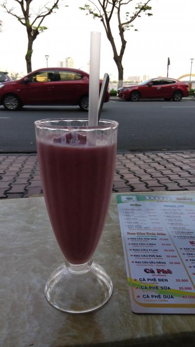 宿泊したホテル近くだったこともあり、ホテルに荷物を預けた状態で、スムージーを戴きながら旅の思い出を振り返り、ゆっくりさせて貰いました。前の通りが若干交通量がありますが、ハン川を眺めつつまったりと時間を過ごせました。