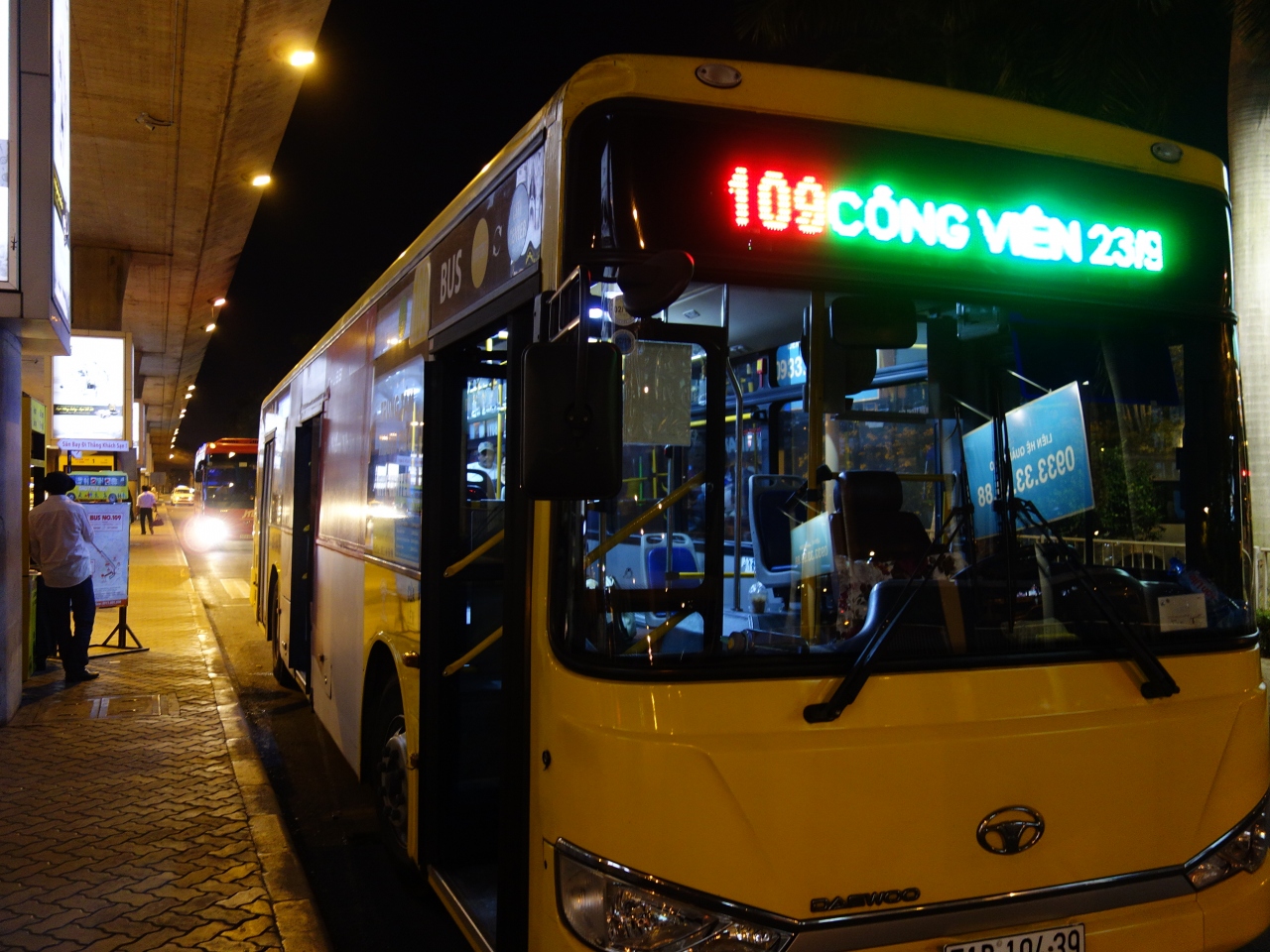 空港から市内まで20,000ドン(100円)で行けるので、毎回利用しています。ホテルもこのルートに近いところを利用するようにしています。行き先を車掌さんに伝えておけば降りるところで教えてもらえます。行きと帰りではルートが多少違うので空港行きを利用する場合は事前にバス停を確認しておいたほうが良いと思います。空港から9月23日公園行きは公園を挟んで北側のレライ通りを通りますが、空港行きは公園の南側のファングーラオ通りを通ります。ただ荷物が多い場合や複数人で利用する場合はグラブでタクシーを呼んでもらえば空港まで95,000ドン(475円)なのでそちらのほうがいいかもしれません。