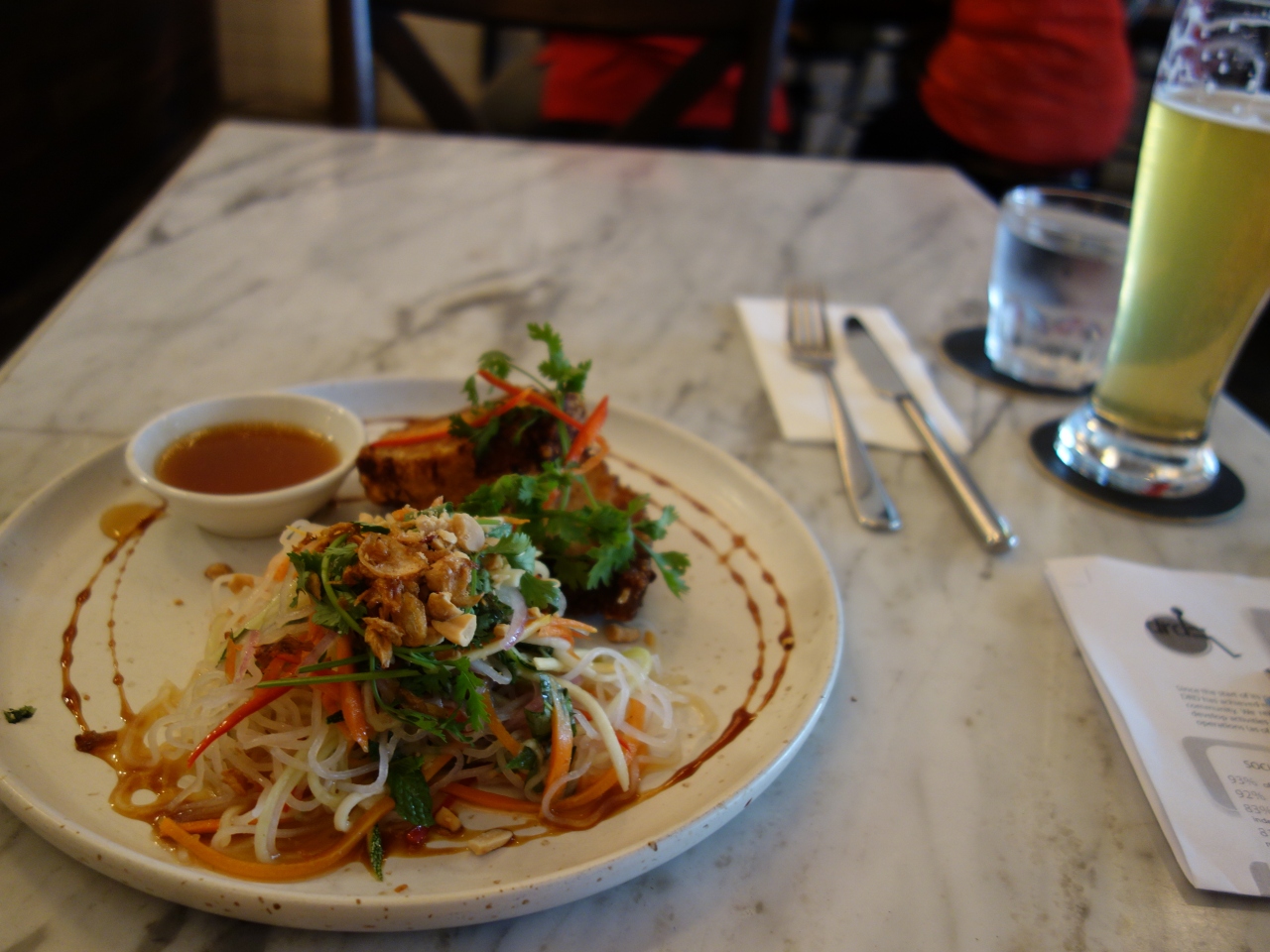 オペラハウス向かいの細い路地を入った2階にあります。料理はベトナムキュイジーヌと言うか、ベトナム料理と西洋料理をミックスしたような感じです。見た目もおしゃれで、味も洗練されていますが、値段は少し高めです。料理1品とビールとデザートで1,500~2,000円といったところです。