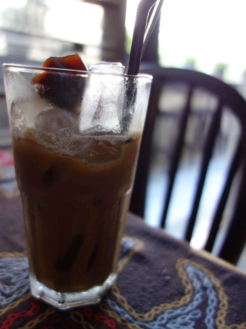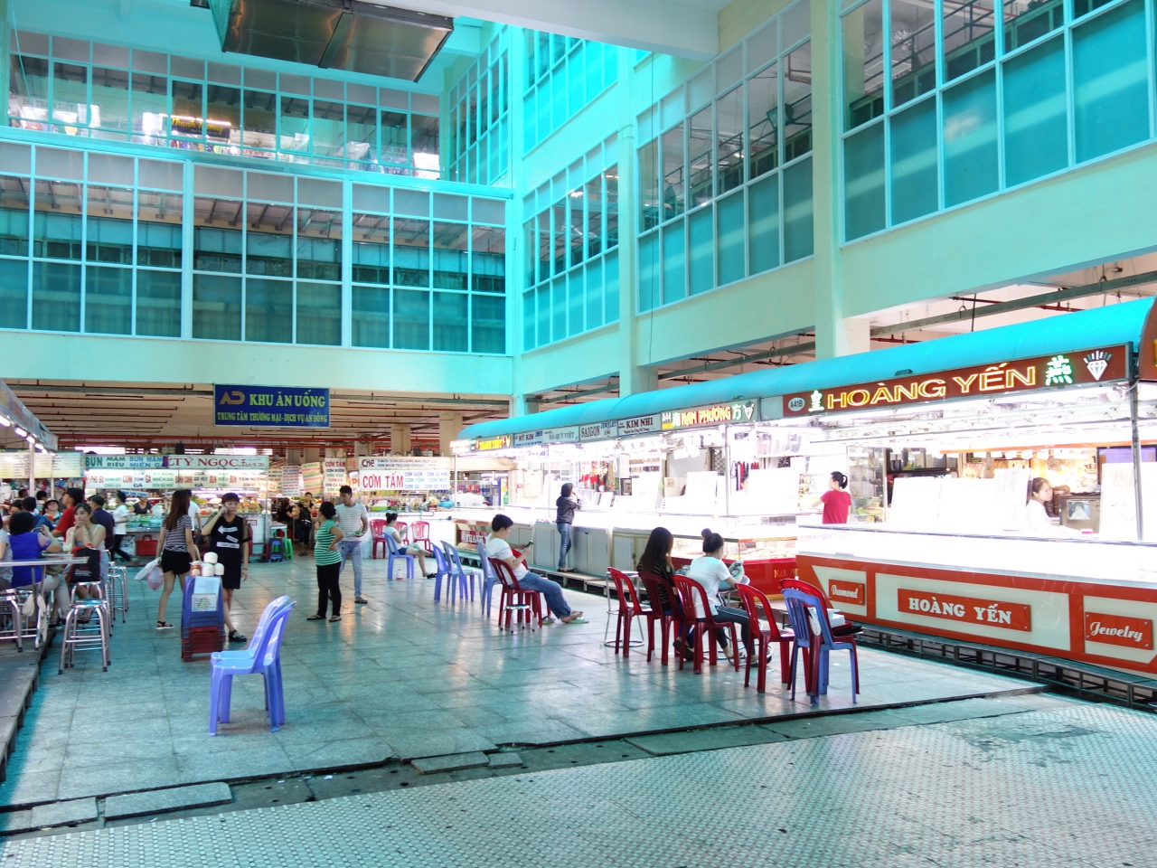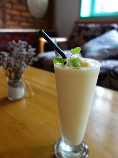 ベンタイン市場の一本裏通りの3階建てビルの2階にあります。市場から近いのでちょっと休憩に立ち寄るには絶好の場所です。狭い入口を入り階段を上るのですが、入口の手書き看板が目印ですが、この日は入口に若いイケメンの案内係がいました。店内は椅子席とソファー席があります。シントーが40,000ドン(200円)位なので、エアコンも効いて、もちろん無料Wi-Fiも使えるので安いと思います。