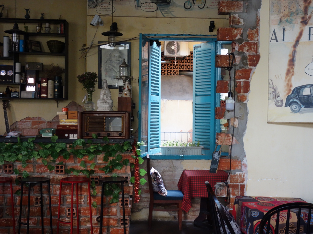 ドンコイ通りからオペラハウスの脇道を進み、Thai Van Lung通りに出たら9番地を探してください。看板のある入口を入り3階まで登ります。落ち着いた雰囲気のカフェでソファー席テーブル席テラス席があるのでご希望の席へどうぞ。コーヒーが200円位と安いです。