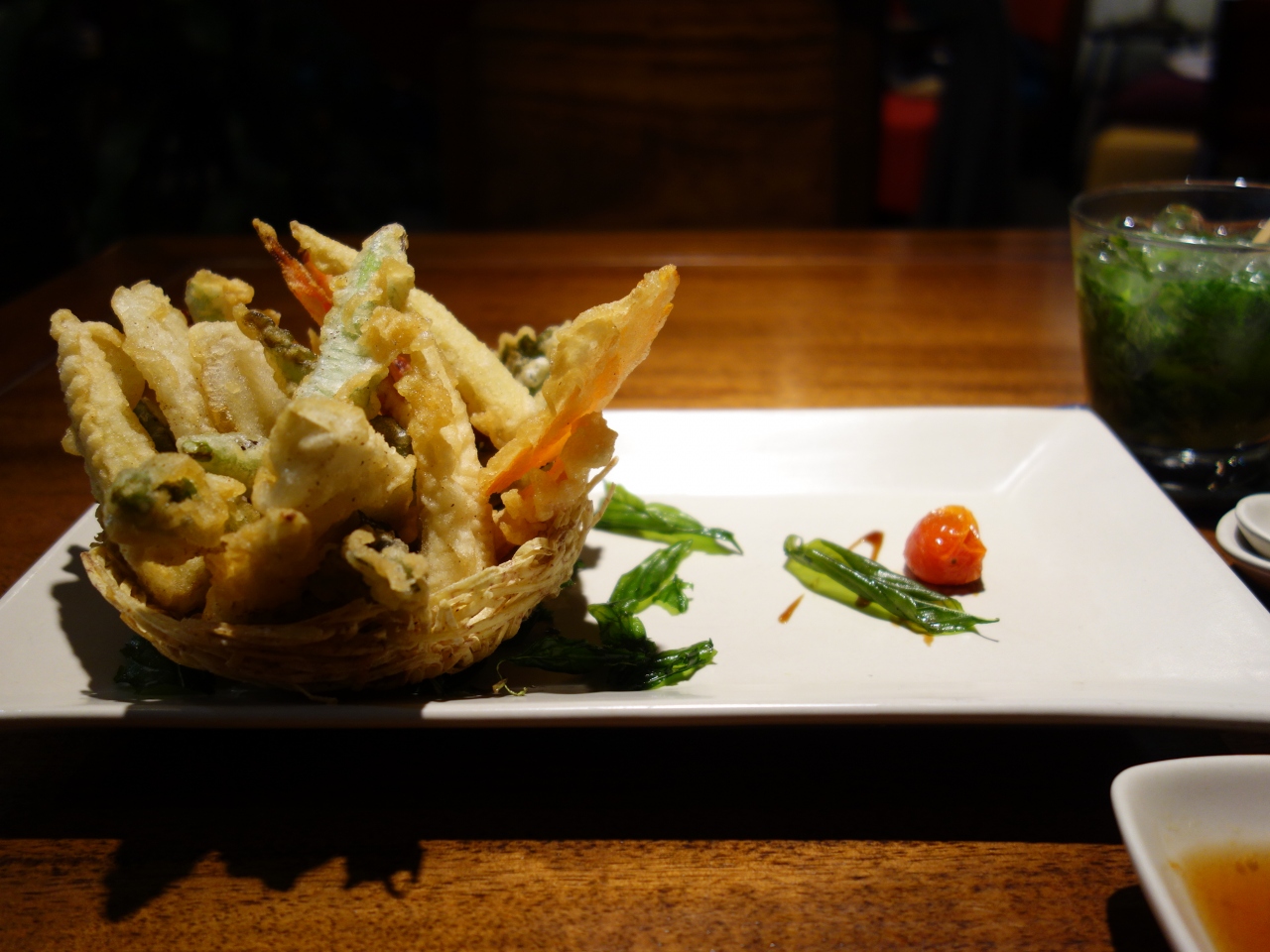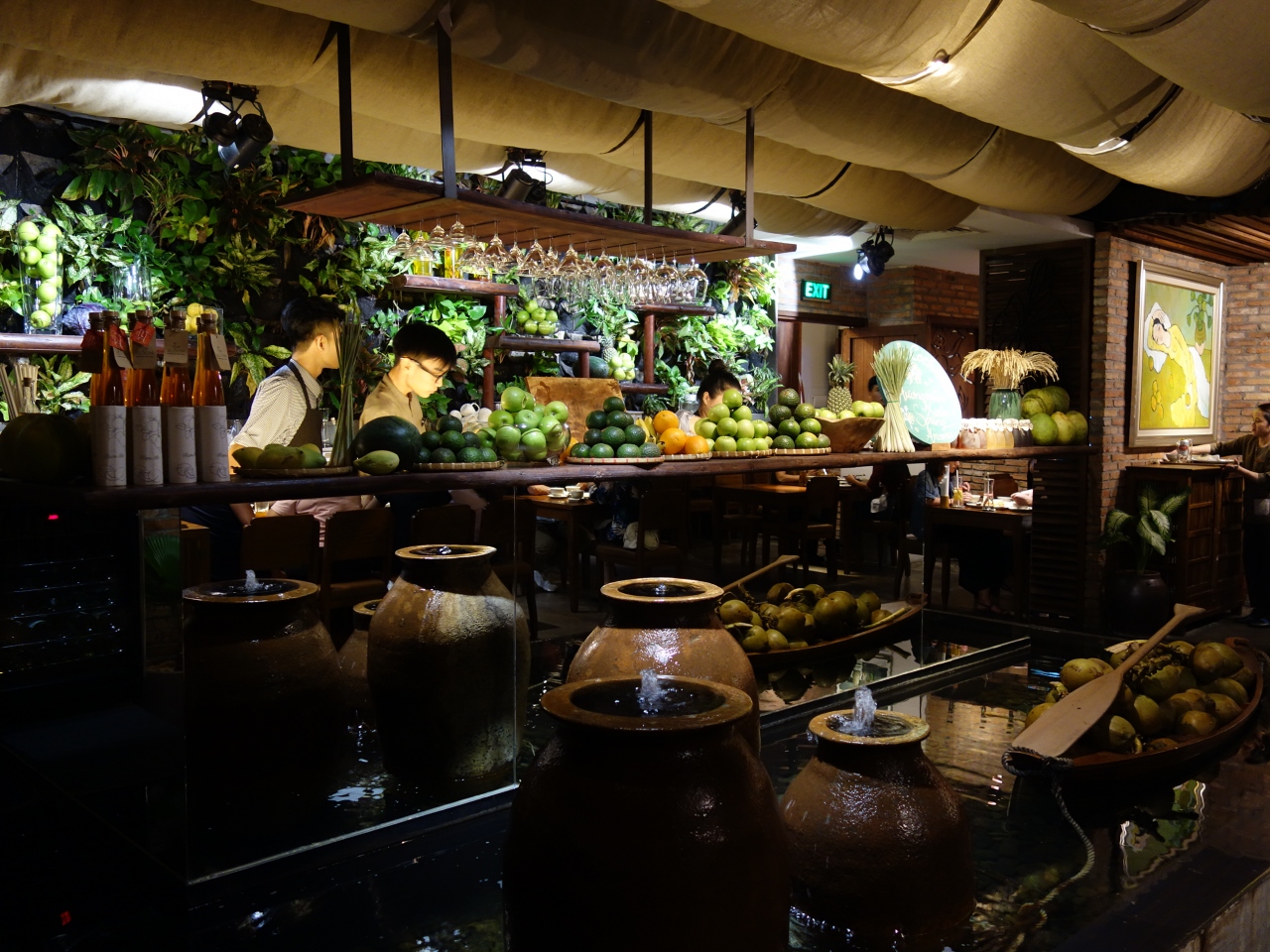 ホーチミンに3店舗あるうちのラウンジ&レストランに行ってきました。こちらは高級レストランで大切なお客様や接待に向いています。場所はドンコイ通りからオペラハウスの脇道を進み、Thi Sach通りに出たら、サイゴン川方面に進み2番地を探してください。予約してないと待たされる場合があります。カジュアルナ服装でかまいませんが、富裕層の方が多いいのでTシャツに短パンはよした方がいいと思います。野菜のフライ(天ぷらといった感じ)150,000ドン(750円)モヒート130,000ドン(650円)と料金は特に飲み物が高めです。これに税・サービス料が付加されて323,400ドン(1,600円)ほど支払いました。フライが揚げすぎで硬かったので半分残しました。ただこの1品だけで評価するのはむずかしいです。