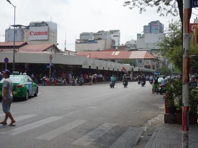 私はレンタルバイクでチョロン(中華街)へ行く途中に寄りました。バスは6番56番のチョロン行きで市場前で降りれば6,000ドン(30円)で行けます。乗るバス停によって番号が違うのでバス停の表示でBX CHO LON行きのバスに乗りチョアンドン?と確認すればよいと思います。車掌さんにチョアンドンと言っておけば降りるときに合図してくれます。ベンタイン市場より規模が大きく品ぞろえも豊富ですが、ベンタイン市場で値切ったほうが安いです。既製品のアオザイはベンタイン市場より同じ商品でも値段が高く結局ベンタイン市場で買いました。安さを求めるのならタクシー代を払ってまで来る価値はないと思いますが、観光で1度は見てみたいというのであればチョロンと合わせてみて回ってもいいかもしれません。