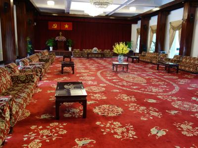 1975年4月30日、統一会堂(元南ベトナム大統領官邸)のフェンスを破り北ベトナム軍戦車が突入しサイゴンが陥落した象徴的な場所です。現在も各国要人を歓迎する際に使用されたり、広場では市民が色々な催しを開催したりしています。入場料はエントランスチケットが40,000ドン(200円)でそれ以外にもありますが、中に入ってみると特にチケットのチェックはないので、このチケットだけでいいと思います。この日はホーチミン平和文化の日で、非暴力社会のためのイベントが行われていました。