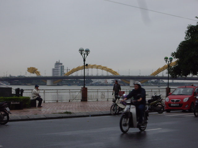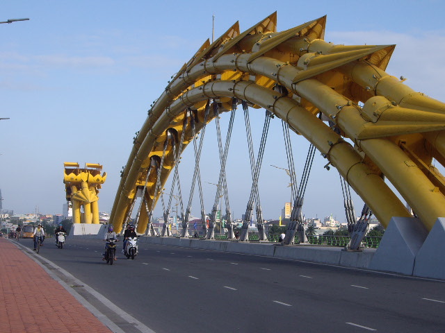 中心市街地の南に位置し、五行山やミーケービーチに行くときに渡りました。市街地とうって変わって交通量が少ないので、途中で止まって景色を眺めてみました。市街地に戻る時や、ミーケービーチに行く時などは、この黄色いドラゴンが目印になって助かりました。