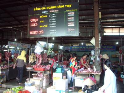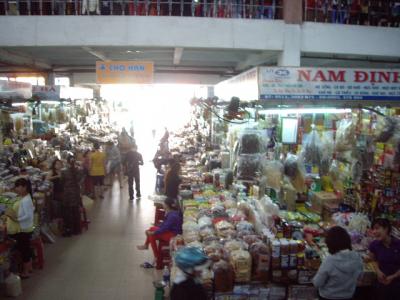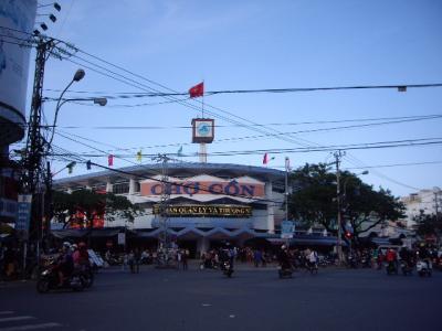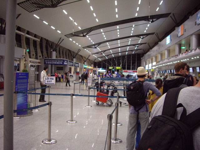 中心市街地からタクシーで15分ほどで着きます。料金は、60,000ドン位約360円でした。ただ深夜に到着した時は、中心市街地のホテルまで$7とか$10とか言われました。その事をホテルで話したら、$6で迎えをしているということだったので、2度目の宿泊の時は、迎えをお願いしました。出口でプラカードを持ったホテルの人がお出迎え、当然迷うことなくホテル到着。楽チンです。空港は国内線も国際線も同じターミナルです。ショップの数はそれほど多くありませんが、ベトナム料理フォーのレストランもあります。