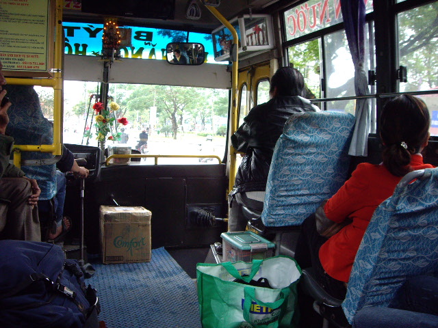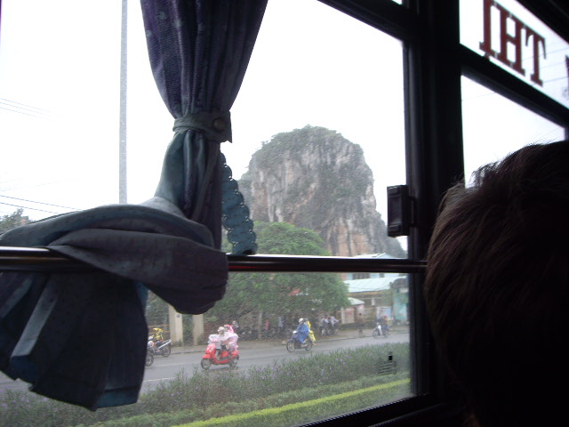 ダナンからホイアンへは路線バスが走っています。バス停はダナン大聖堂正面入り口付近にあります。バスは小型のマイクロバスでおよそ20分間隔で運行されています。料金はホイアンまで20,000ドン約120円、大きな荷物があるとプラス10,000ドン車内で徴収されます。5行山を左に見て進み、途中バス停で降り五行山に立ち寄ることもできますが、入り口道路と反対側道路にバス停があるので徒歩15分位かかります。ホイアンに到着すると、そこからはバイクタクシーで5分ほどで中心市街地に行くことができます。