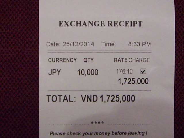 ダナン空港に夜7時30分到着でしたが、ドアを出て建物外側の両替所は開いていました。10,000円両替すると1,725,000ドンでした。ニャチャン市内の両替所で10,000円両替したら1,760,000ドンでしたので、ダナン空港でのレートはそれほど悪くないと思います。レートが心配でしたら、とりあえず5,000円位両替したらどうでしょう。