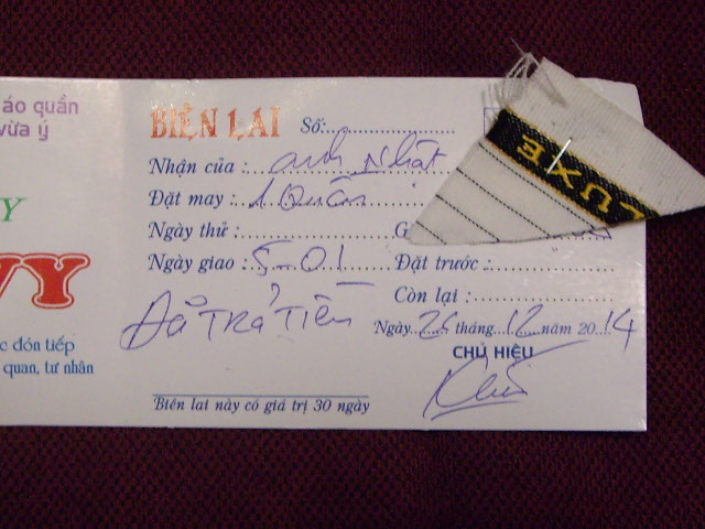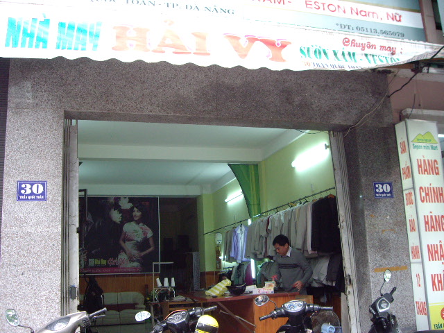 ダナン大聖堂の通りと交わるTran Quoc Toan通りの30番地にあります。英語があまり話せないので、宿泊ホテルDAIAのスタッフに通訳をお願いしました。気に入った生地がなかったのでコン市場の生地屋さんまでバイクに乗せて行ってくれて生地を選ばせてくれました。日本だったら3万円はするだろうオーダーメイドがなんと600,000ドン約3,600円でした。仕上がりも完璧です。