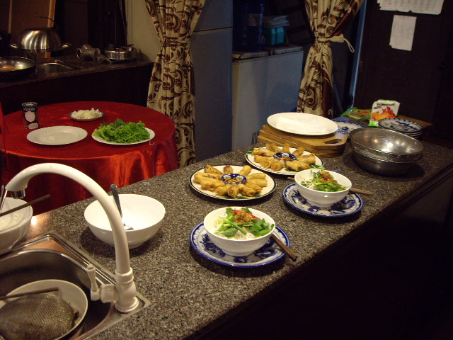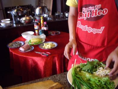 バクダン通りの西のはずれにあるベトナム料理店サクラレストランの料理教室に参加して来ました。午後4時から2時間の教室で1名$40。料理は3品、牛肉のフォー、揚げ春巻き、バナナのココナッツ揚げ。自分で作ってなんですが、非常においしく、ボリューム満点でした。先生のラムさんは、日本語が上手ですので説明も分かりやすいです。