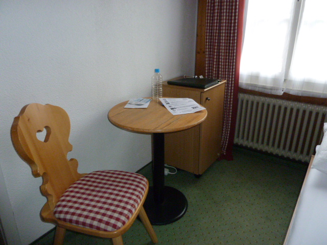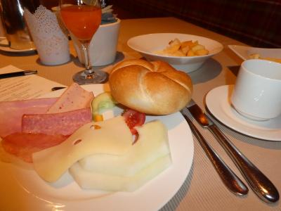ホテル前の道は急な坂です。ハードキャリーの荷物があるときは、ホテルに送迎をお願いしたほうが良いと思います。有料ですがあるようです。ベランダ付きの部屋からは、ユングフラウがきれいに見えます。朝食は生野菜はありませんが、チーズ、ハム類、ゆで卵、