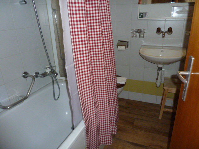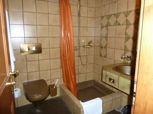 - シャワーのヘッドが高い位置に固定されていて、これを使うと洗面所もすべて水浸しに。
